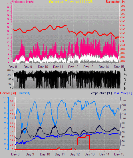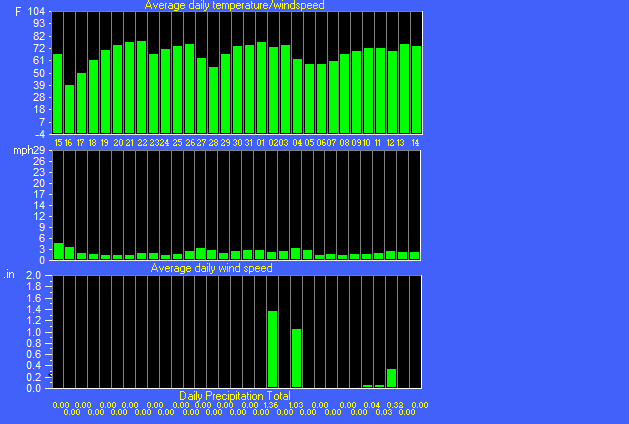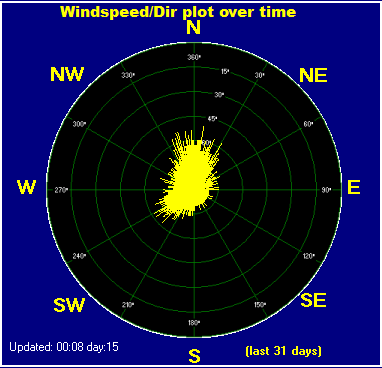 Maximum windspeed = 10.4 mph from 00°( N ) on day 01 at time 17:16
